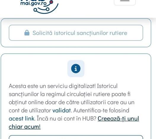 Consultarea directă în cadrul istoricului sancțiunilor rutiere, disponibil pe platformă, a informațiilor referitoare la starea dreptului de a conduce, precum și a numărului punctelor de penalizare acumulate.